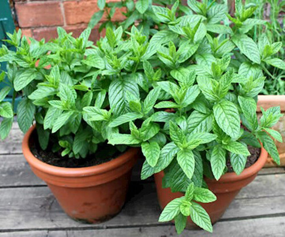 Peppermint (Mentha x piperita) is grown for their leaves which are used to flavor vinegar and jelly (often served with roast lamb and other meats), and to enhance thirst-quenching cooling beverages.