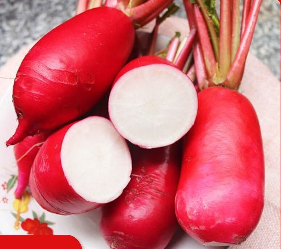 China Rose is a Chinese winter radish that can be harvested from 25 to 55 days after sowing. Full sized roots are 2 inches in diameter and up to 8 inches long with a smooth rose-colored skin. Flesh is firm, mild, and sweet, while the tops are strong and tall. This variety is also used for sprouting.