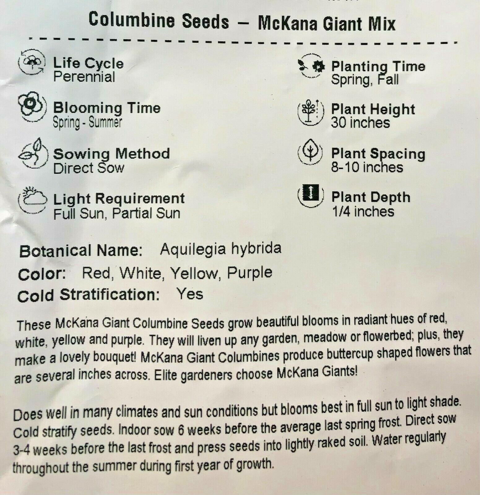 Columbine MCKANA GIANT Mix Perennial Hummingbirds Deer Resistant Non-GMO 500 Seeds Pure Seed – Non-GMO – Fresh – No Filler...