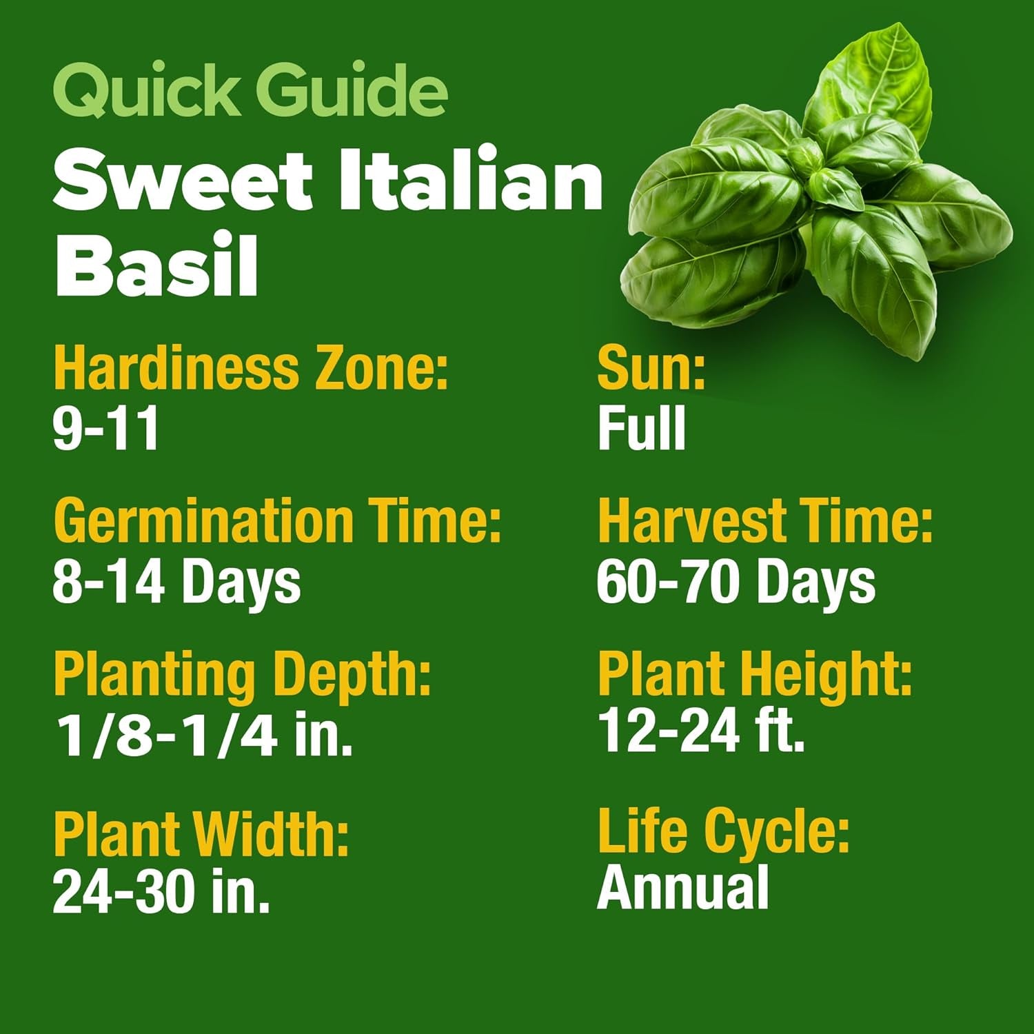Italian Basil Seeds (Bulk Pack) 1424 Sweet Large Leaf Basil Seeds for Planting